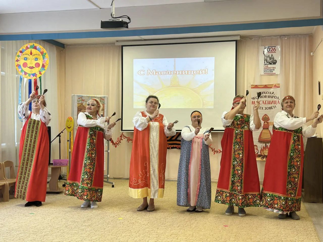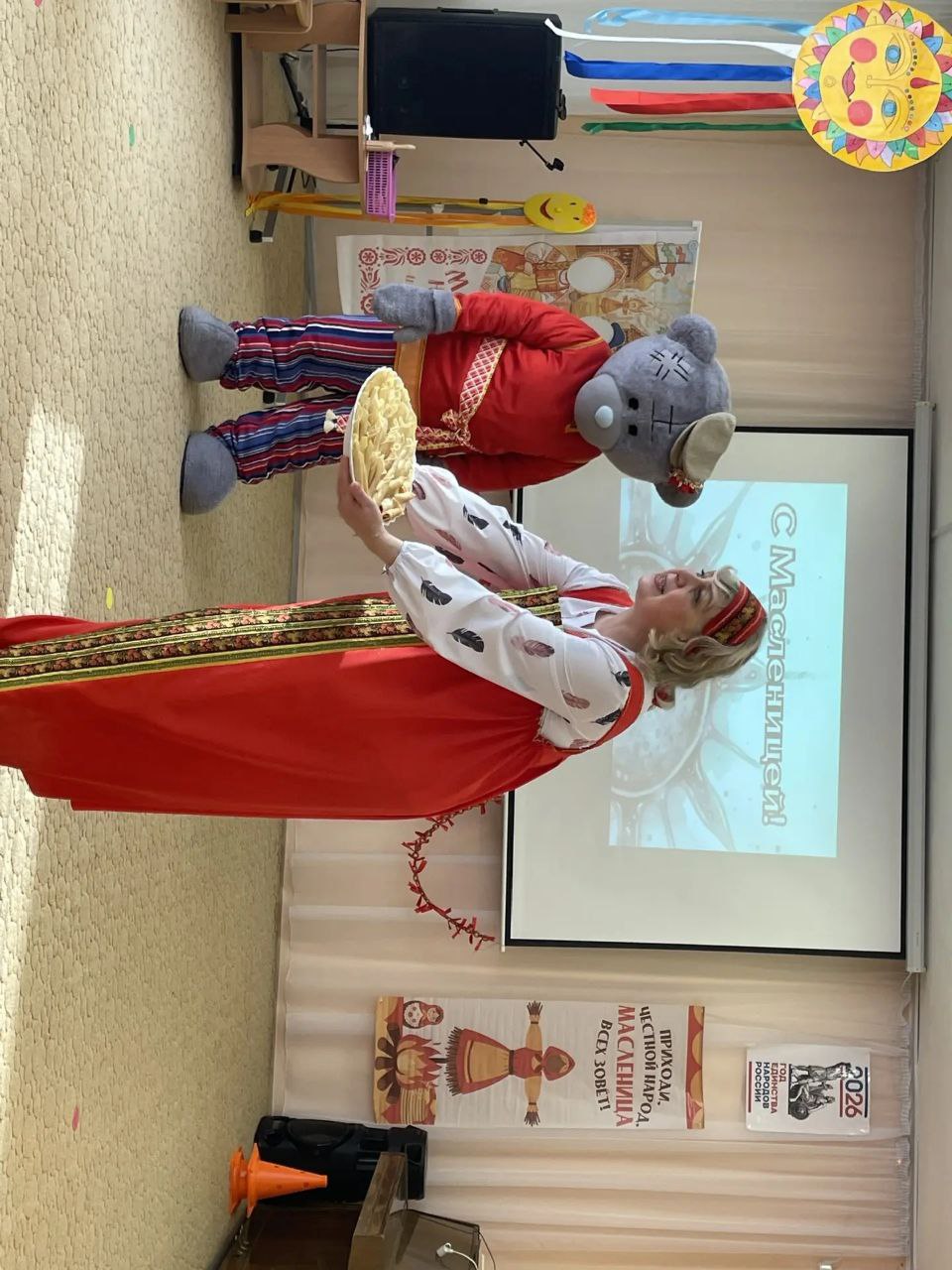 Очень весело с песнями, играми, традициоными русскими забавами, мы проводили зиму. Закончилось гуляние, как и полагается горячим чаем с румяными блинами. |