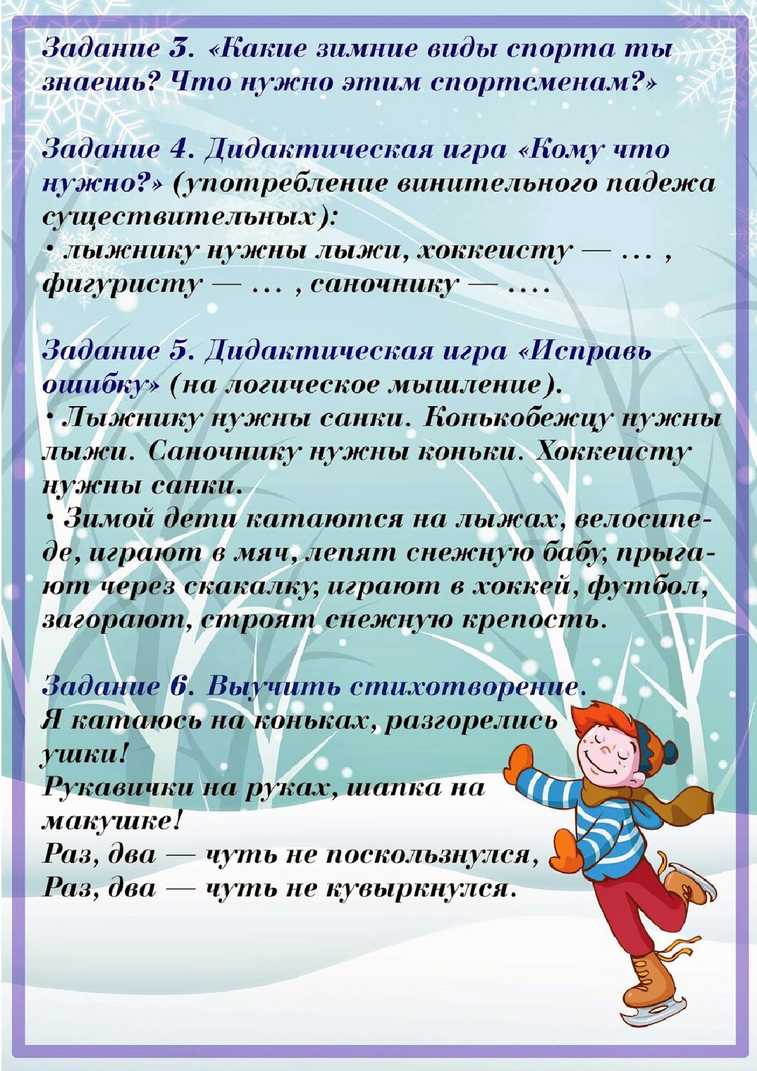 Лексическая тема "Зима. Зимние забавы"